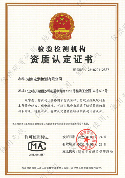 湖南宏润检测有限公司检验检测机构资质认定证书
