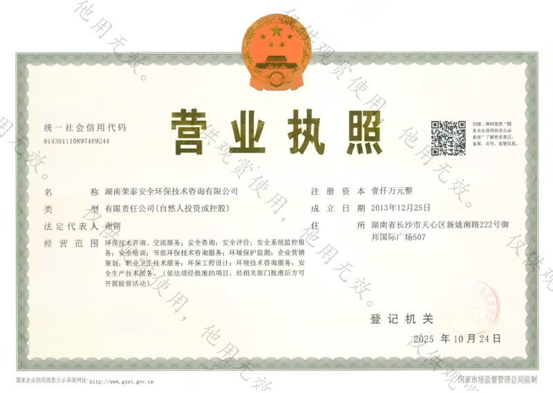 湖南荣泰安全环保技术咨询有限公司营业执照